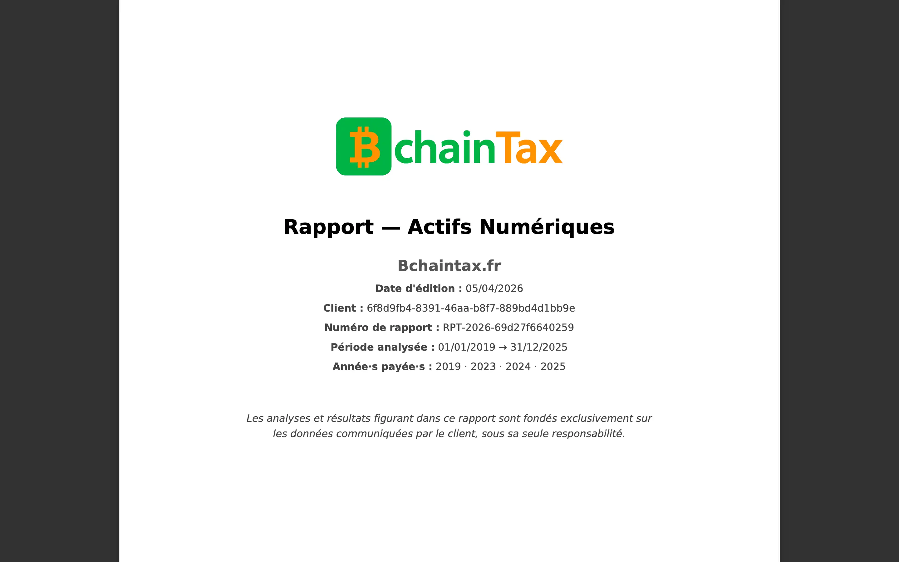 Remplissez-le facilement avec vos opérations crypto (achats, ventes, etc.) à l’aide d’un format clair et guidé.
